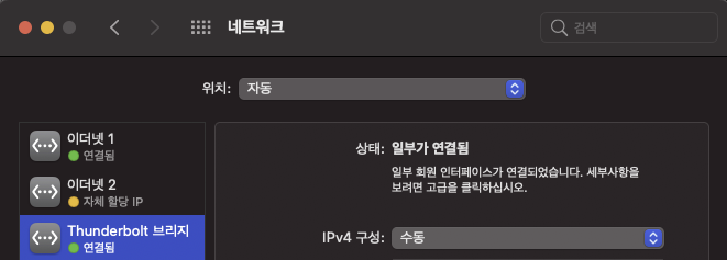 위와 같이 썬더볼트 케이블을 사용하면 썬더볼트 브릿지 네트워크 사용 가능.