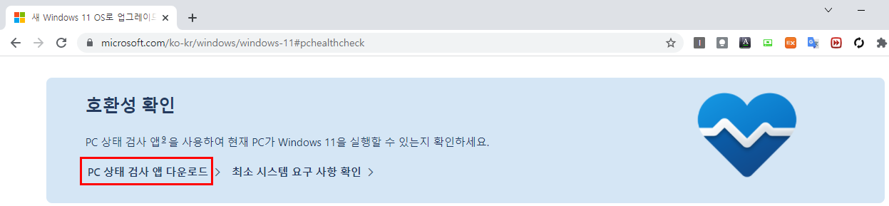 https://www.microsoft.com/ko-kr/windows/windows-11#pchealthcheck